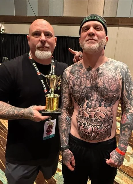 A multi award-winning artist, Lucky’s work has earned recognition for its precision, depth, and impact. His journey wasn’t handed to him—it was earned. After finding himself on the wrong path and surrounded by the wrong influences, Lucky turned to tattooing as both an escape and a purpose. What started as an outlet quickly became a calling. Under the mentorship of industry legends Eddie “Bossman” Smith and Ashley “Dash” Williams, he refined his skill, discipline, and artistic voice—emerging as one of Oklahoma’s most respected artists. His speed, precision, and consistency even earned him recognition as one of the fastest tattoo artists in the state.